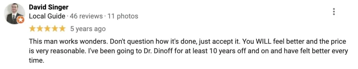 As part of this limited-time special, you will meet with Dr. Joel Dinoff and receive the following at your appointment: